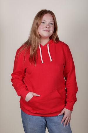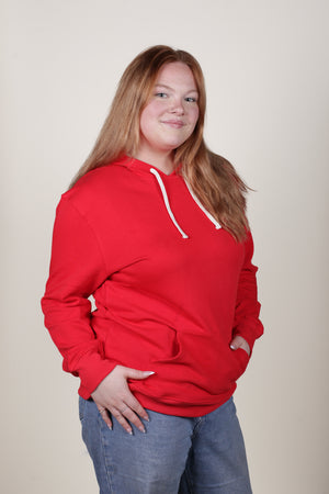 Inset sleeve. Lined hood with organic cotton cord. Kangaroo pouch front pocket, black includes our hidden cellphone security pocket inside. Ribbed cuffs and hem.