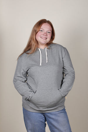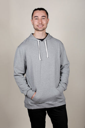 Inset sleeve. Lined hood with organic cotton cord. Kangaroo pouch front pocket, black includes our hidden cellphone security pocket inside. Ribbed cuffs and hem.