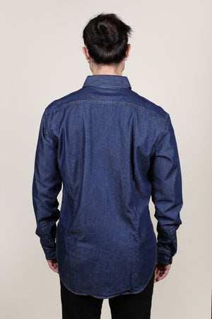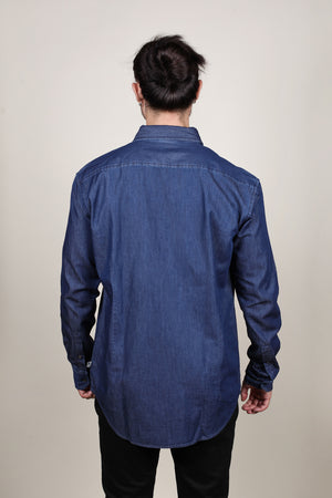 Curved hemline. Cutaway collar. Darting along back. Double pleating on cuffs. Permanent collar stays.