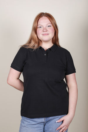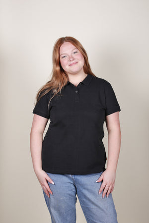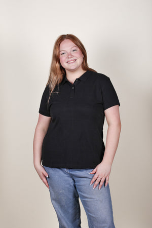 Honeycomb (pique) knit. Two button collar stand. Rib neckline. Reinforced shoulders. Flat-locked stitched sleeves.