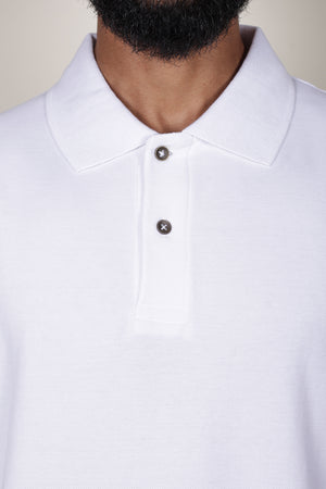 Honeycomb (pique) knit. Two button collar stand. Rib neckline. Reinforced shoulders. Flat-locked stitched sleeves.
